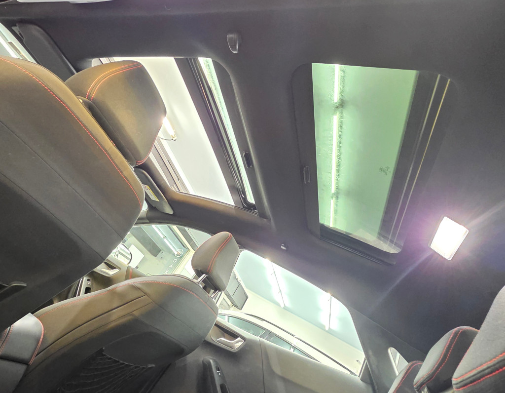Tettuccio con parte anteriore apribile elettricamente, e parte posteriore panoramica fissa.